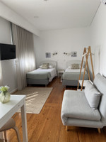 I rented a Botica studio for just over 2 months. The studio was bright, clean and spacious as was the entire building. Very well kept. Asides from the kitchenette in my studio there was also a full kitchen available if one wished to use and laundry facilities were also available. As for the location it was perfect. Right in the center of Espinho, food market, train and beach less than 5 mins walk.